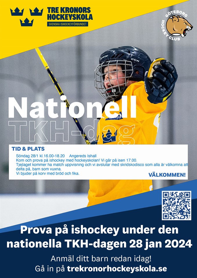 Söndagen den 28 januari är det nationella dagen för Tre kronors hockeyskola. Göteborg HC kommer att anordna aktiviteter från 16.00 - 18.20 i Angered Arena. Kom och prova på ishockey eller paraishockey med Göteborg Hockey Club. Vi bjuder på korv med bröd och fika kl. 16.00. Från kl. 17.00 går vi på isen, men kom gärna en stund innan för att förbereda och ta på utrustning. Tjejlaget kommer att ha en uppvisningsmatch som du inte får missa. Efter det avslutar vi dagen med skridskodisco som alla är välkomna att vara med på. Välkomna! Göteborg HC 25 jan 2024 0kommentarer